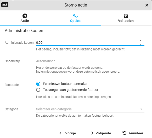 Als het om een nieuwe factuur gaat kunt u eventueel een categorie selecteren waartoe de aan te maken factuur dient te behoren.