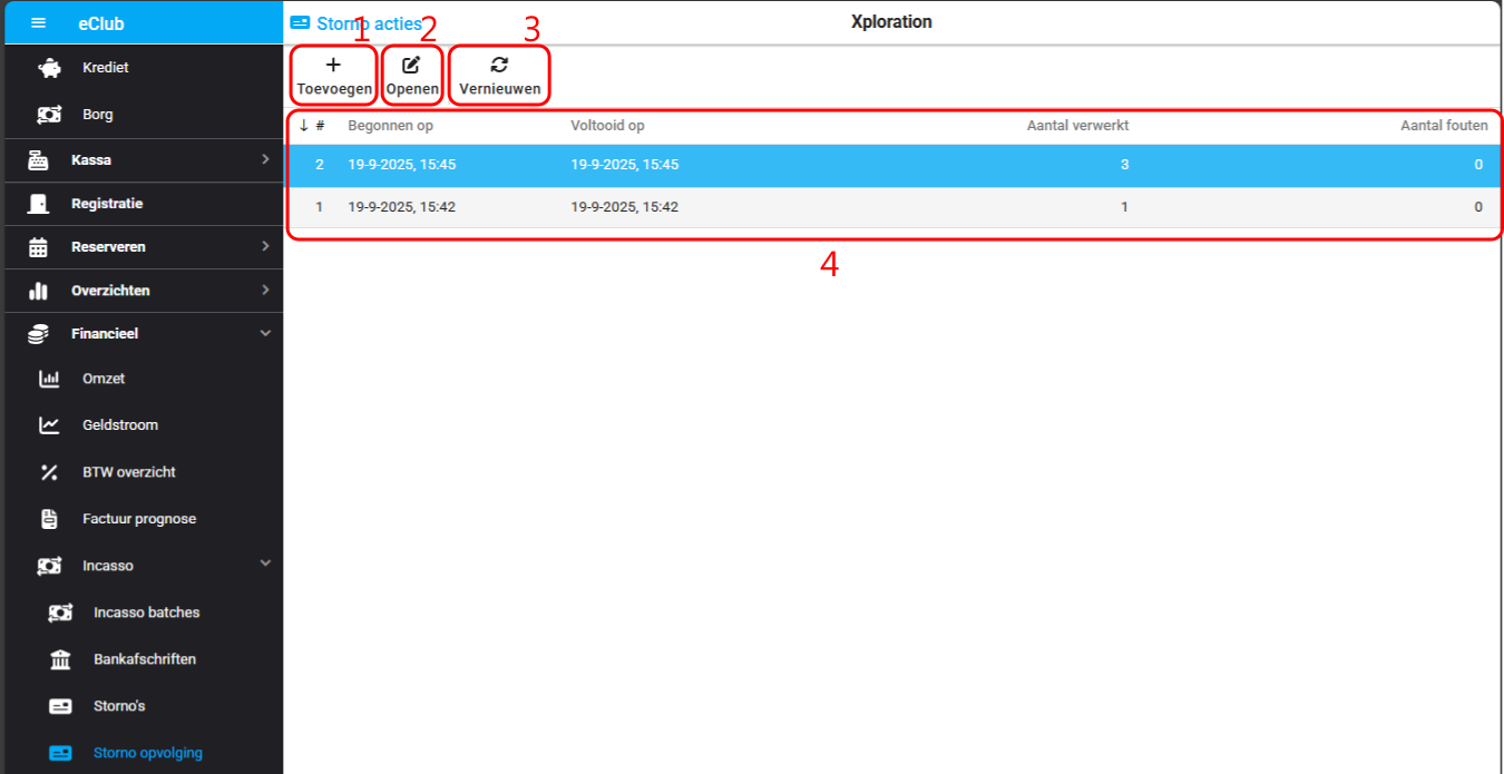 Overzicht uitgevoerde storno opvolgingen